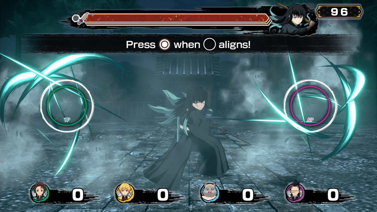 • Disfruta de varios minijuegos – ¡Compite contra los demás o trabaja en equipos de dos en una gran variedad de minijuegos! En determinados momentos, te encontrarás con poderosos demonios como Akaza, ¡todos los jugadores deberán cooperar para derrotarlos!