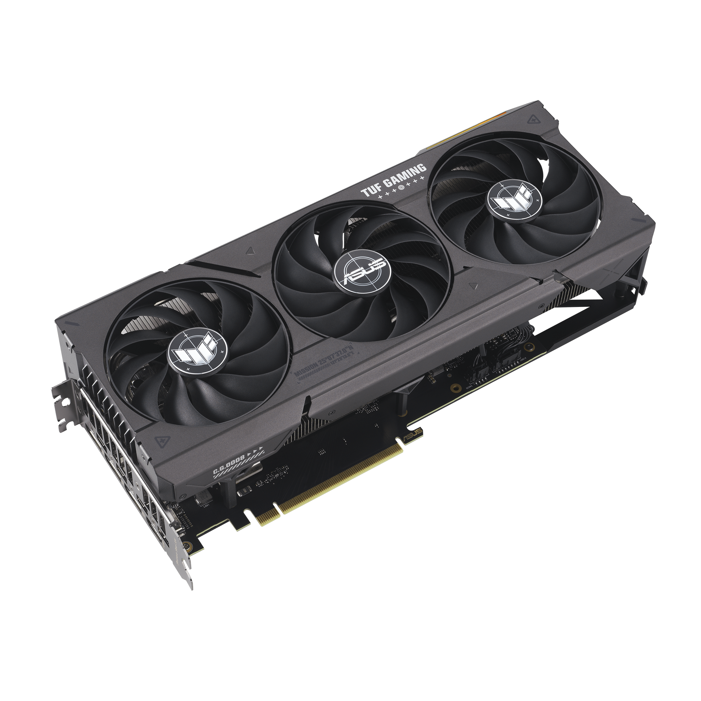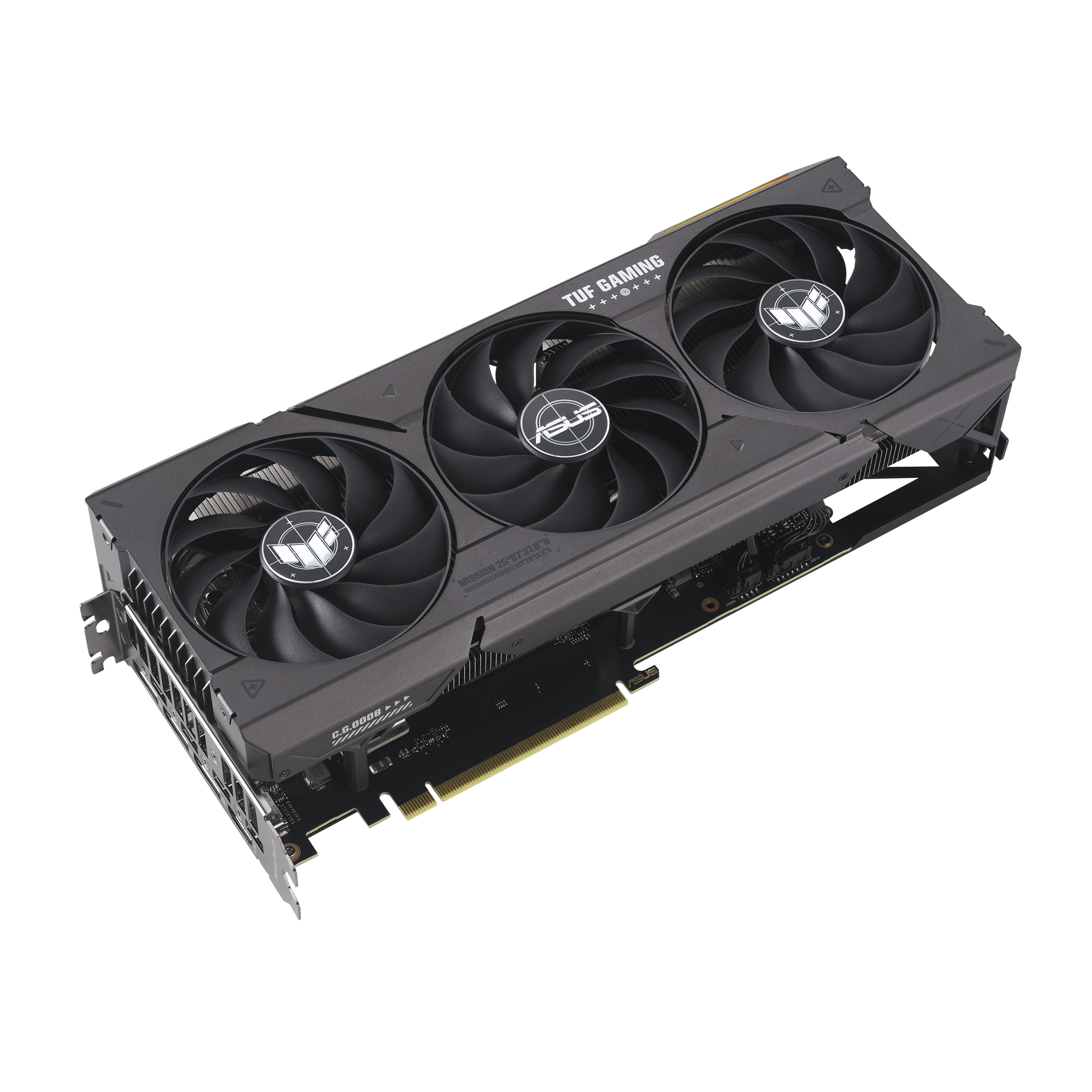 ASUS ofrece la TUF Gaming GeForce RTX 4060 Ti a los jugadores que buscan una tarjeta gráfica con un estilo minimalista, funciones esenciales y un rendimiento sólido como una roca. Esta tarjeta utiliza la misma GPU potente que su hermana ROG Strix, pero con un disipador ligeramente más grueso y una longitud total más corta de 300 mm para una mayor compatibilidad con la carcasa. Una amplia rejilla de ventilación en la placa posterior de aluminio de alta resistencia mejora el flujo de aire en comparación con las tarjetas de la generación anterior. Con la ventilación adicional, su tamaño de 3,12 ranuras y los tres nuevos ventiladores Axial-tech de 11 aspas, el modelo TUF está totalmente equipado para una refrigeración eficaz.