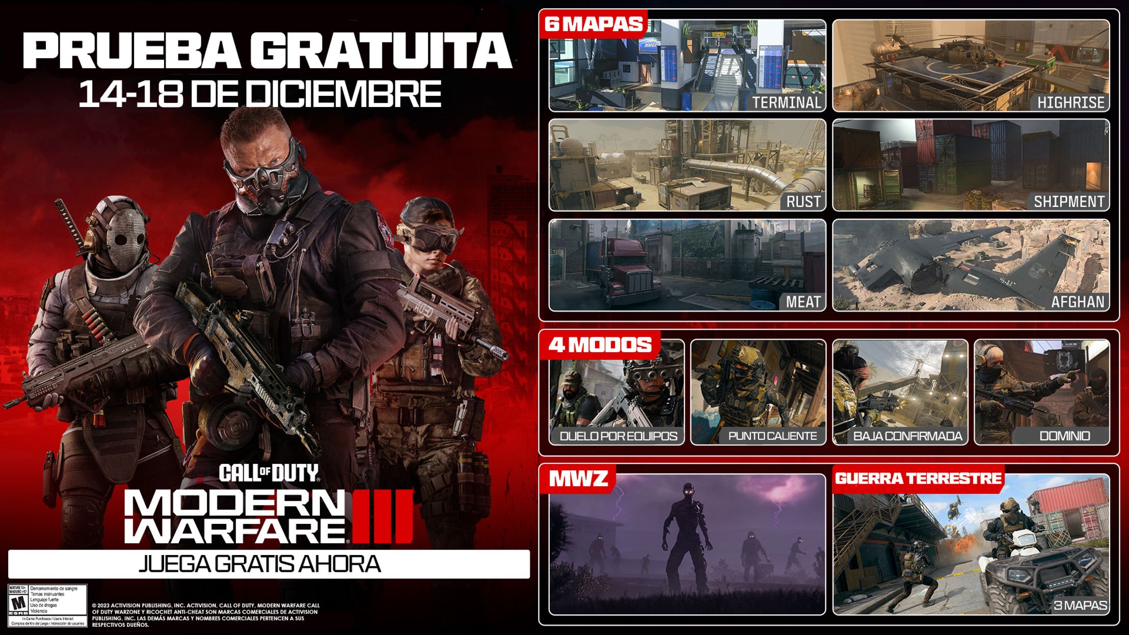 Comunicados Acceso gratuito a la Temporada 1 de Call of Duty:... Juega el multijugador de Call of Duty: Modern Warfare III de manera gratuita entre el 14 y el 18 de... BY revistayumecr 12/12/2023 0 Comments