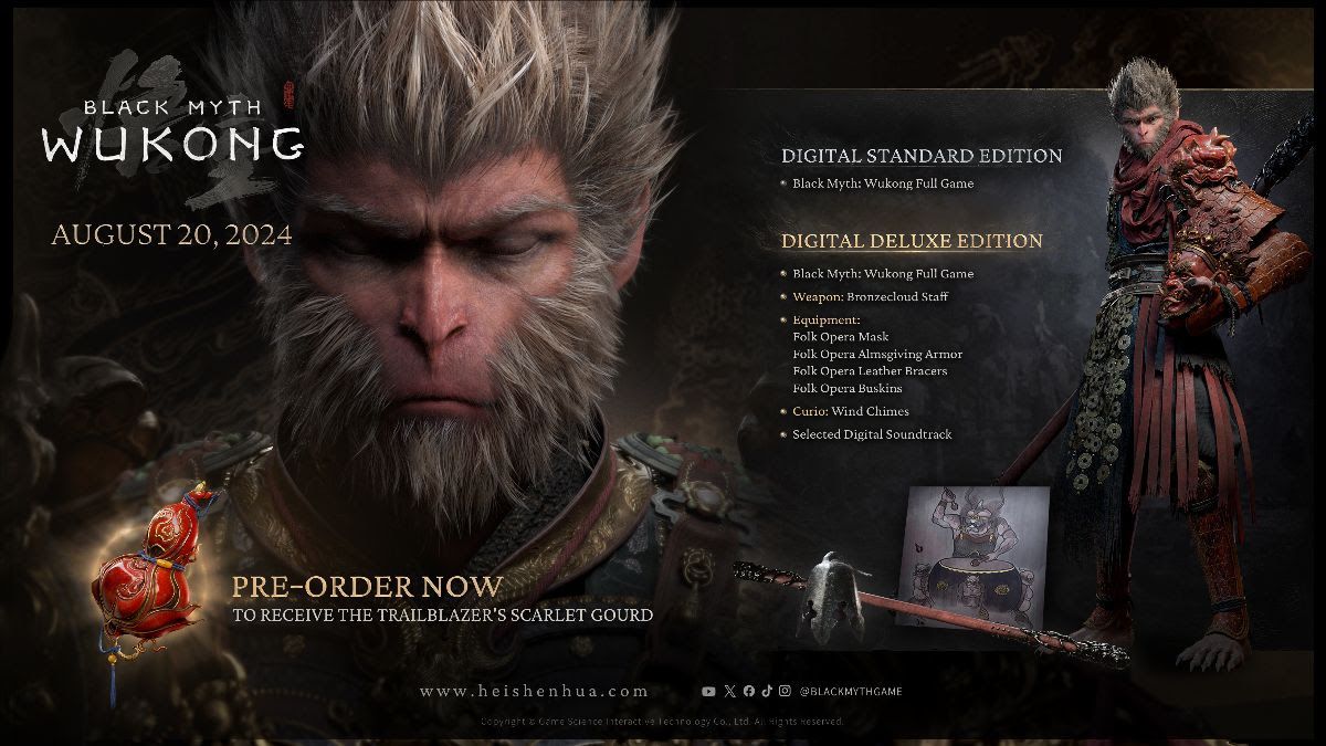 Game Science, la desarrolladora y distribuidora global china, se complace en compartir un nuevo tráiler para el muy anticipado RPG de acción Black Myth: Wukong en el Summer Game Fest(SGF) 2024. Los emocionados fans ya pueden acceder a la preventa del título en PlayStation 5 y PC vía Steam y la Epic Games Store a partir de hoy, de cara a su lanzamiento global el 20 de agosto de 2024. Los fans pueden encontrar los detalles completos sobre las ediciones y preventa en el sitio oficial de Black Myth: Wukong.