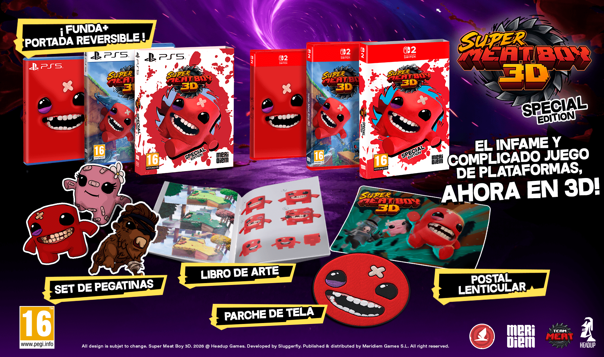 ¡El plataformas más hardcore renace! Meridiem se complace en anunciar que publicará las ediciones físicas de Super Meat Boy 3D para Nintendo Switch 2 y PlayStation...