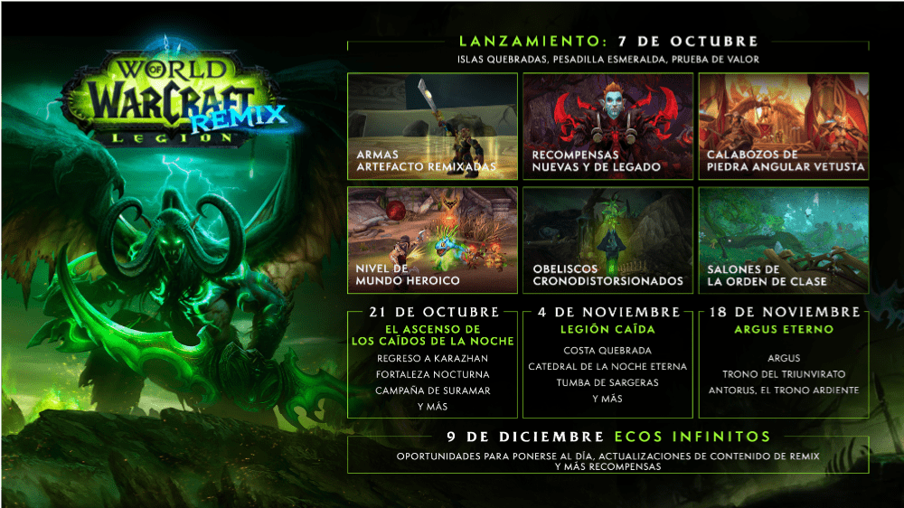Noticias Videojuegos ¡Revive una experiencia “legiondaria” cuando Legion Remix llegue el 7... revistayumecr 18/09/2025 Podrás crear un cronoaventurero con una de las 12 clases originales y reproducir toda la expansión Legion a un ritmo...