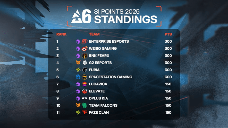 Las finales, disputadas de manera presencial, se llevarán a cabo entre el 11 y el 29 de octubre. El campeón, el subcampeón, el tercer y cuarto lugar se clasifican para el BLAST R6 Major de Múnich en noviembre. Además, los equipos que participen en ambas fases acumulan puntos para intentar su clasificación al Six Invitational 2026, el mundial de Rainbow Six, que se realizará en febrero en la ciudad de París, Francia.