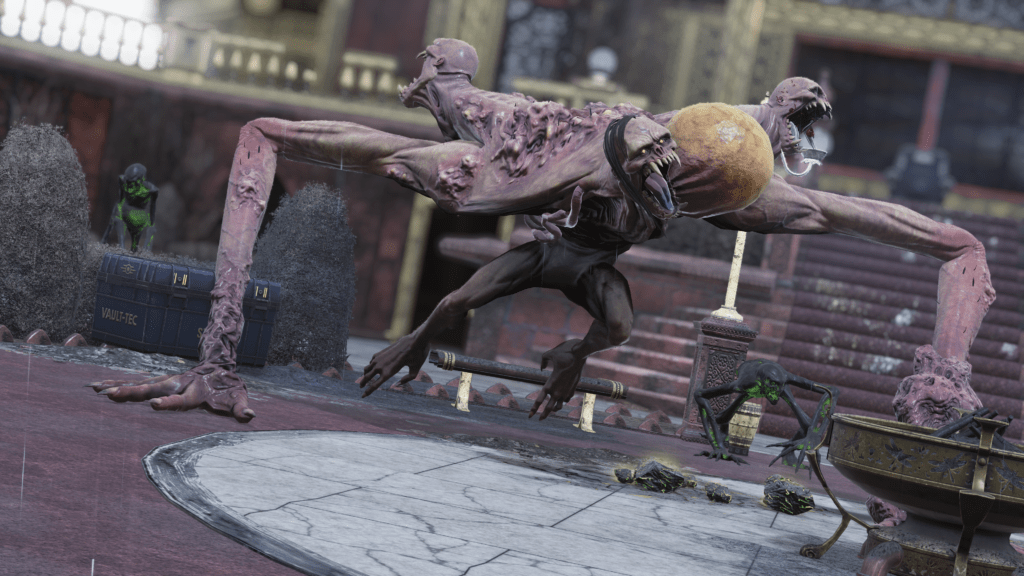 La bestia calcinada sigue siendo una gran amenaza aérea en Appalachia con ataques sónicos, descargas radiactivas y maniobras ágiles en el aire que obligan al enemigo a estar en constante movimiento. Este invitado sorpresa añade una dimensión vertical al combate final del evento con sus característicos chillidos que espantarán a los invitados.