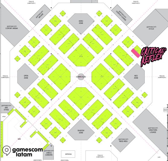 La publicadora Critical Reflex se enorgullece en anunciar que estará presente por primera vez en gamescom latam 2026 con un stand propio (en las ubicaciones 4007 y 4009, ver mapa más abajo para más detalles) de 50 metros cuadrados, ofreciendo 20 estaciones de juego, donde cada visitante podrá jugar cualquiera de los siguientes 14 títulos, todos los cuales tendrán traducciones al español en su lanzamiento. Dos de ellos tendrán a algunos de sus desarrolladores disponibles para entrevistas, se trata de Ironhive (Wondernaut Studio) y Drowned Lake (Monumental Collab). Si vas a asistir al evento y quisieras hablar con ellos, tan solo responde este correo para agendar tu entrevista:
