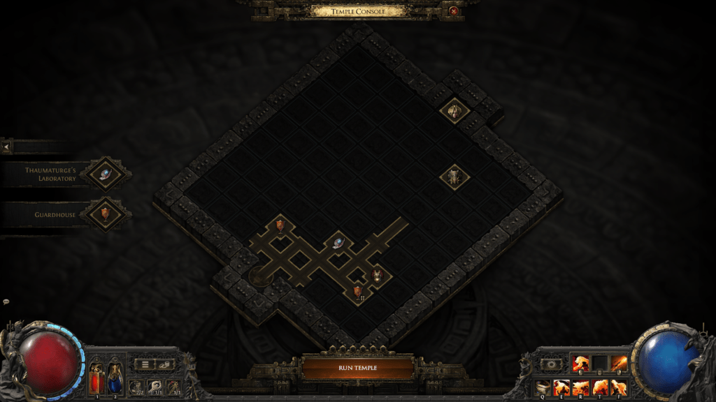 La ubicación de cada sala es importante para obtener el máximo rendimiento. Por ejemplo, los jugadores podrán colocar un Comandante para controlar una guarnición de tropas, lo que hará que los monstruos sean más difíciles. Al poner en marcha el templo, algunas de las salas se desestabilizarán, dejándote la opción de cada vez añadir seis salas más, aumentando así el tamaño del templo. ¡Descubre medallones que modifican el comportamiento de las salas, oportunidades de doble corrupción y mecanismos Vaal experimentales capaces de sustituir las extremidades por mecánicas!