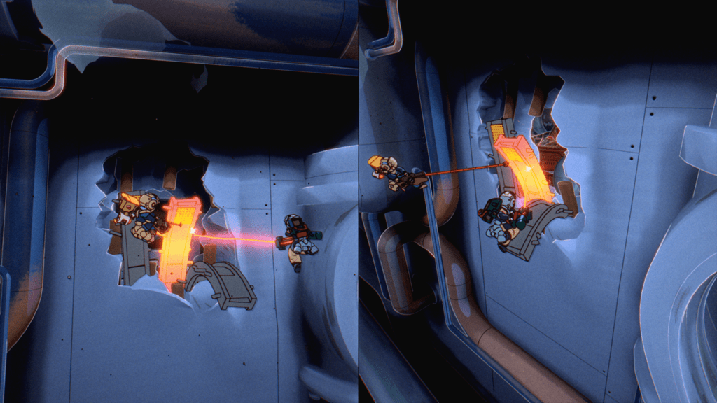 Mientras un jugador derrite la viga con el Cañón de rayos, el otro puede moverla con el Gancho de chatarra. ¡Pongan sus mentes a trabajar en conjunto para usar sus herramientas de múltiples formas!