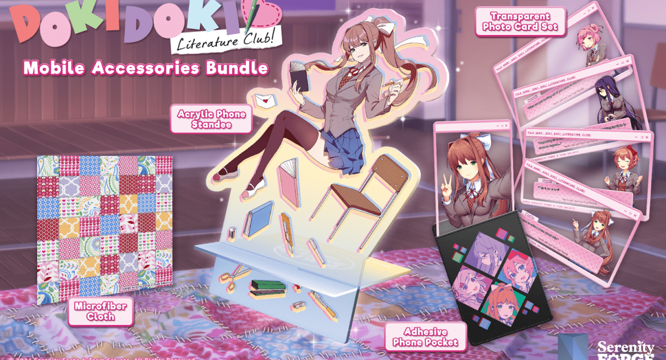 Además, ya está disponible por USD $39.99 el Doki Doki Literature Club – Mobile Accessories Bundle, un paquete de accesorios para mejorar tu experiencia móvil, que incluye:
