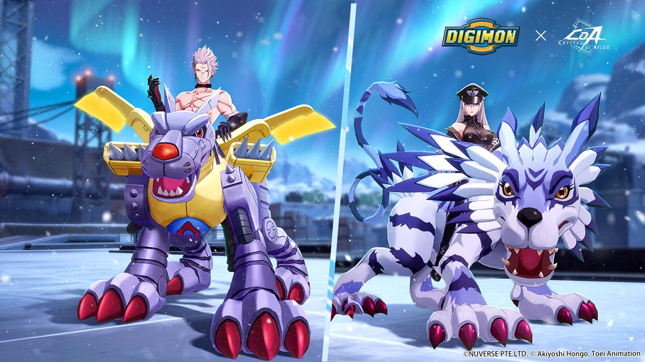 En colaboración con Digimon Adventure, el primer anime televisivo de la popular serie Digimon, Crystal of Atlan permite a los jugadores luchar con mascotas exclusivas y monturas especiales que pueden obtenerse en eventos. Los Digimon clásicos Agumon y Gatomon se unirán como nuevas mascotas para ayudar a derrotar a poderosos jefes, y podrán evolucionar en combate a WarGreymon y Angewomon respectivamente al usar habilidades únicas. Además, Crystal of Atlan incluye a Garurumon y MetalGarurumon como nuevas monturas, cada una con habilidades especiales para apoyar a los jugadores.