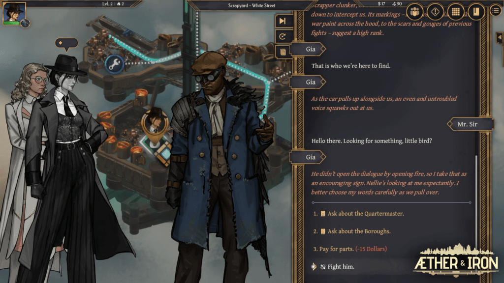 • Visuales fascinantes: Aether & Iron se inspira en el período art decó y en los Detective Comics de la década de 1930, lo que le aporta una identidad visual única.