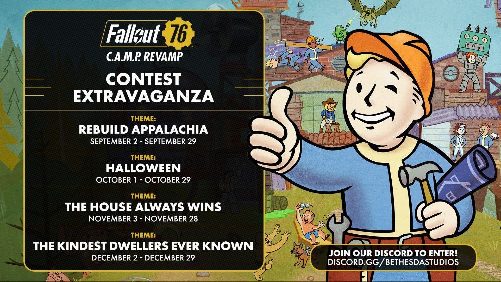 Desde el lanzamiento de la renovación completa de los C.A.M.P.s con la Temporada 22: “A la Moda en Appalachia”, se realizan concursos mensuales. El menú de construcción fue rediseñado para una navegación más clara y se eliminaron varias restricciones para permitir construcciones más creativas.