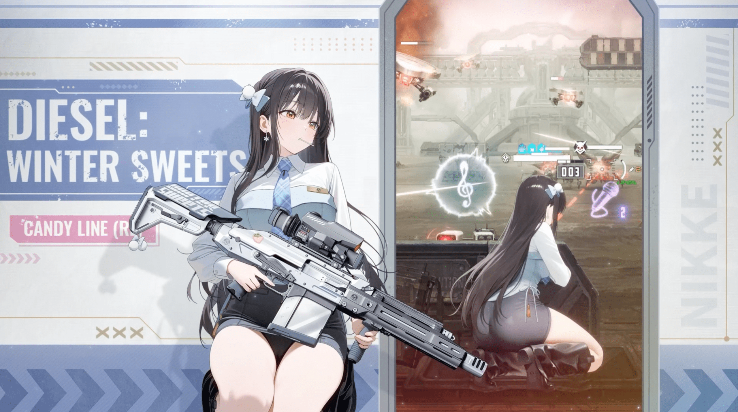 - Diesel: Winter Sweets y Brid: Silent Track: Estos atuendos especiales llegan gracias a Nora, una de las primeras pasajeras civiles traídas a la superficie por el tren AZX. Los jugadores podrán obtener un look casual y relajado para las versiones Alternas de Diesel, y un conjunto más sobrio para Brid.