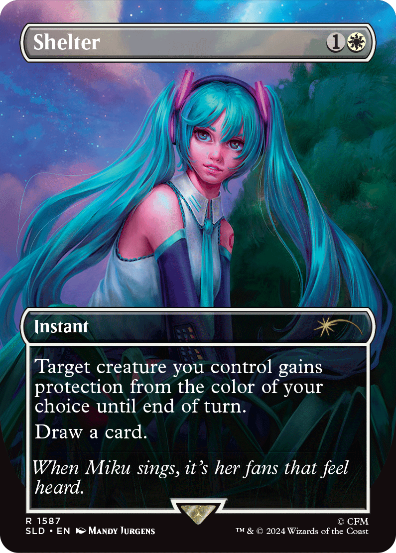 “Secret Lair nos permite tomar las cosas que los fans de Magic: The Gathering aman y combinarlas con la cultura pop y nuevos artistas increíbles. Estamos encantados de formar equipo con el fenómeno global que es Hatsune Miku para esta celebración de un año que los fans del mundo podrán disfrutar.”