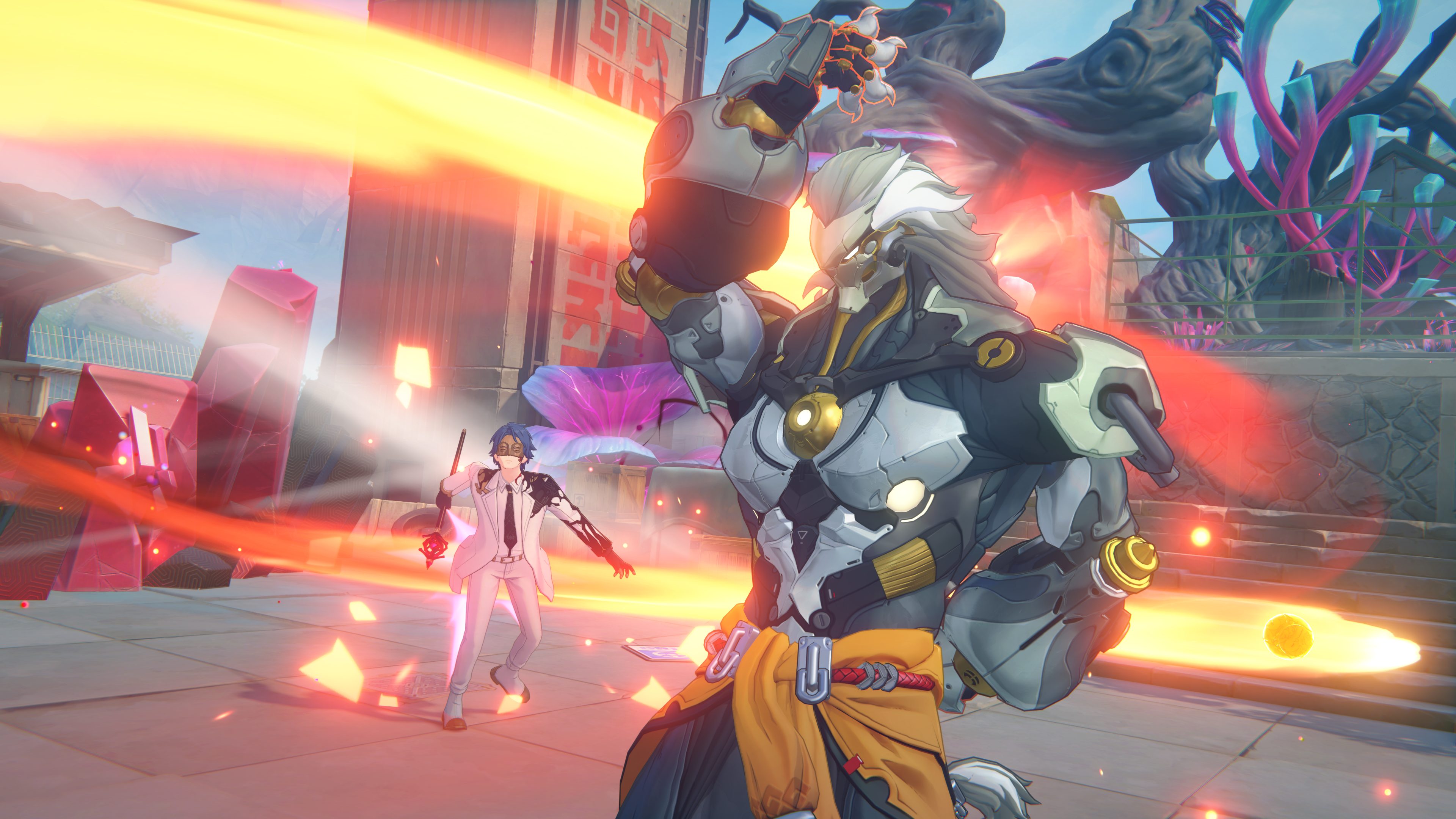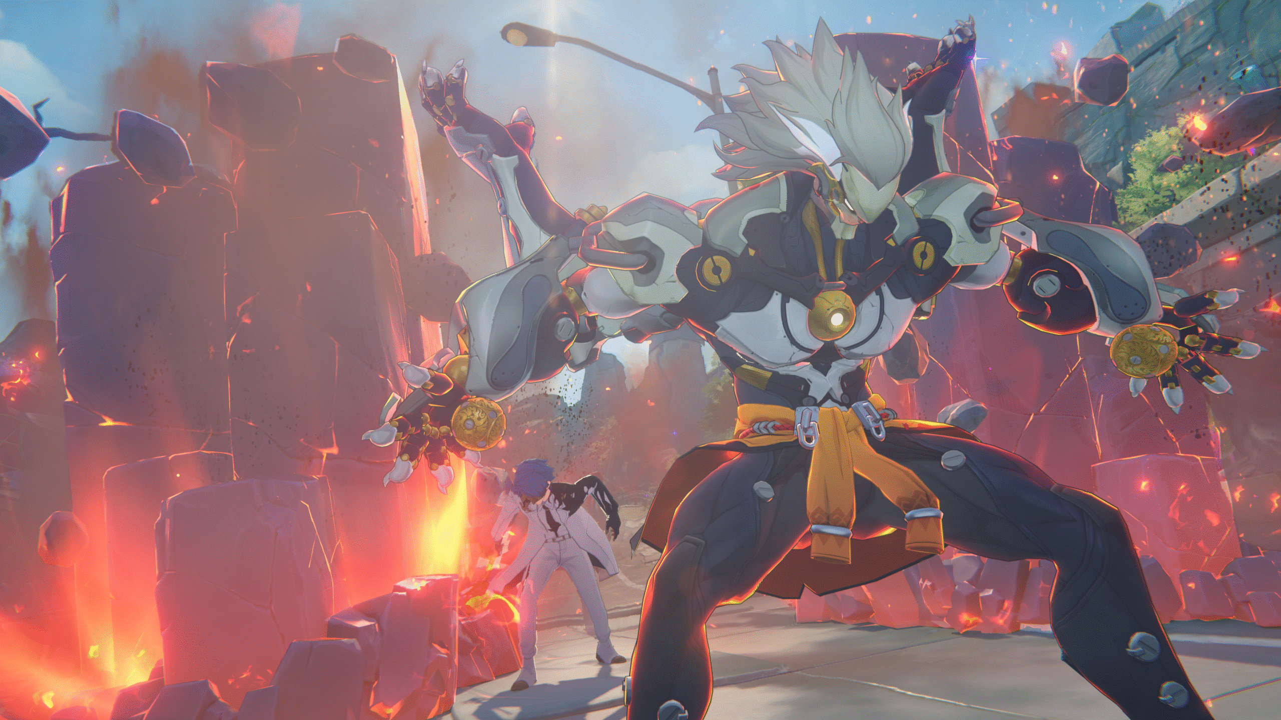 En la versión 2.4, también se unirán al campo de batalla dos nuevos compañeros bangbús. Birkblick, de la Auditoría Krampus, lleva un componente multifuncional instalado en la cabeza que se transforma en una torreta flotante durante el combate para escanear y disparar a los enemigos. Por su parte, el alegre Bloquebú blande su martillo hecho de bloques para aplastar a los enemigos.