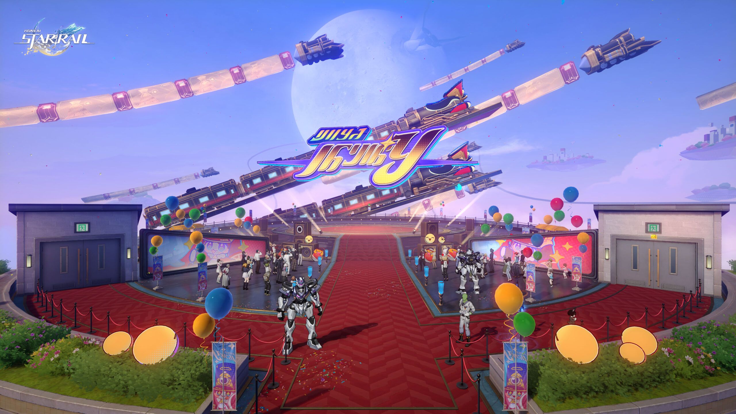 Como una gran celebración en homenaje a las legendarias experiencias del Expreso Astral, el Festival Star Rail incluirá tres zonas de exposición ya abiertas: la zona de Belobog, la zona del Luofu de Xianzhou y la zona de Colonipenal. Los habitantes de Planarcadia podrán subir al tren de enlace especial con la cabeza de Pom-Pom a través de “¡Salto bidimensional!” para experimentar en un solo viaje los momentos más destacados de la expedición trazacaminos. Aquí podrán presenciar la batalla de globos gigantes basados en la Guardiana Suprema Cocolia y el Motor de la Destrucción. También podrán probar de forma inmersiva el emocionante duelo contra la Devastadora Phantylia en el Desfiladero de Escamas del Luofu, y avanzar junto al Expreso hacia El Gran Septimus, con el canto de Robin. Por otro lado, la sede de los organizadores de esta convención, la Torre Perlux del Consorcio Perlux, también será una zona explorable. En su interior, no solo se exhibirá el nuevo modelo superarticulado del Rey Pom-Pom de aleación, ¡sino que también habrá diversas actividades temáticas de mecatrones que no se pueden perder!