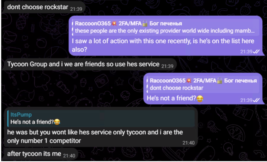 A medida que aumentaba la presión, muchos operadores endurecieron los controles de acceso, se retiraron a canales cerrados o cerraron por completo para evitar acciones legales. En el caso de Tycoon 2FA, Microsoft no pudo comprar el acceso al servicio; el operador rechazó los intentos de nuestros investigadores, lo que requirió de un intermediario de confianza. De hecho, el operador de Tycoon 2FA y el ahora inutilizado desarrollador de RaccoonO365 se comunicaron entre sí, lo que destaca la interdependencia del ecosistema y cómo las interrupciones en una zona influyen en la actividad en otras.