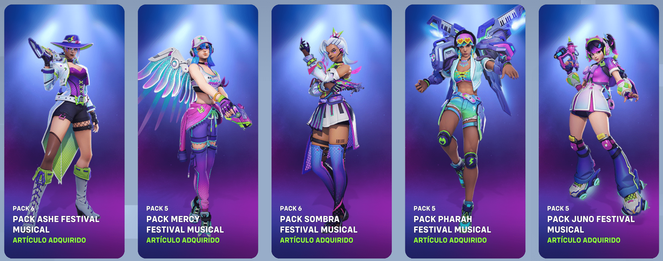 Como es usual, Overwatch 2 nos trae las skins más bonitas y llamativas para nuestros personajes favoritos. Así llega a nosotros el Festival Musical, donde esta vez no se trata de ninguna colaboración, sino de bellísimas skins para nuestras heroínas favoritas, con diseños similares o alusivos a lo que ya hemos visto en colaboraciones con Le Sserafim. Concretamente tendremos a Mercy, Ashe, Sombra, Pharah y Juno, así que recuerda aprovechar la promoción ya que es por tiempo limitado. De momento, definitivamente nuestra favorita es la de Pharah.