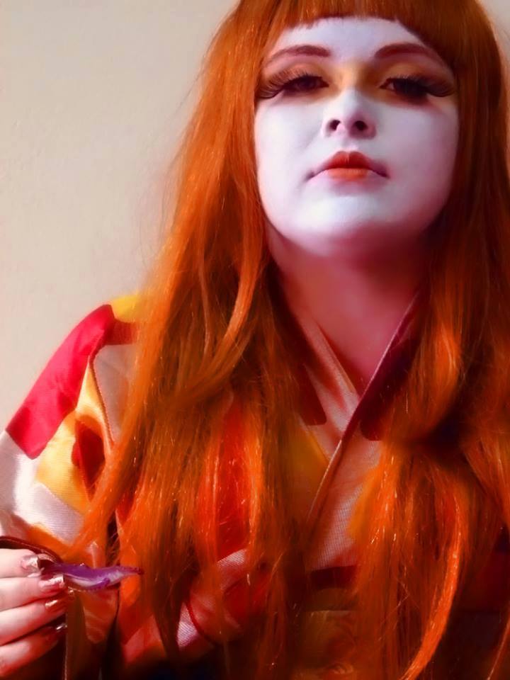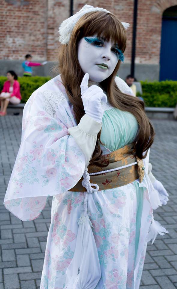 Tengo varios guardados que están a medio terminar o que simplemente he dejado de lado, tengo muuuuucho tiempo sin hacer cosplay, me resulta terriblemente incomodo correr por todo el festival jalando cosas, dando indicaciones o recogiendo basura con un cosplay… También he incursionado en la moda lolita, steampunk y más reciente lo que es el shironuri, pero estoy trabajando otra vez de manera más activa en un cosplay para el Cosparty 2014, me está ayudando la talentosísima Karen Poblete que es diseñadora de modas y jueza de nuestros eventos.