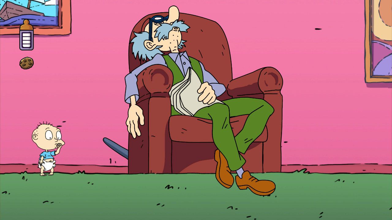 Una de las mejores formas de jugar a Rugrats: Adventures in Gameland es de forma cooperativa, especialmente por que el juego soporta cooperativo local y podremos tener a nuestra familia o amigos para jugar a nuestro lado. Realmente el juego es entretenido no solo por el hecho de ser Rugrats, sino por que el mismo se nota que está hecho con mucho amor y quieren que los más jóvenes puedan conocer una de las series clásicas más queridas de la cadena. Si te gusta modificar el aspecto del juego para sentirte por allá de los 90, puedes agregar un filtro CRT para sentirte frente a una pantalla vieja, e incluso cambiar el formato de pantalla del juego 4:3 para mantener ese aspecto retro. Cuando saltamos y golpeamos el suelo los bordes de este aspecto se moverán incluso, para darle un poco más de inmersión al juego.