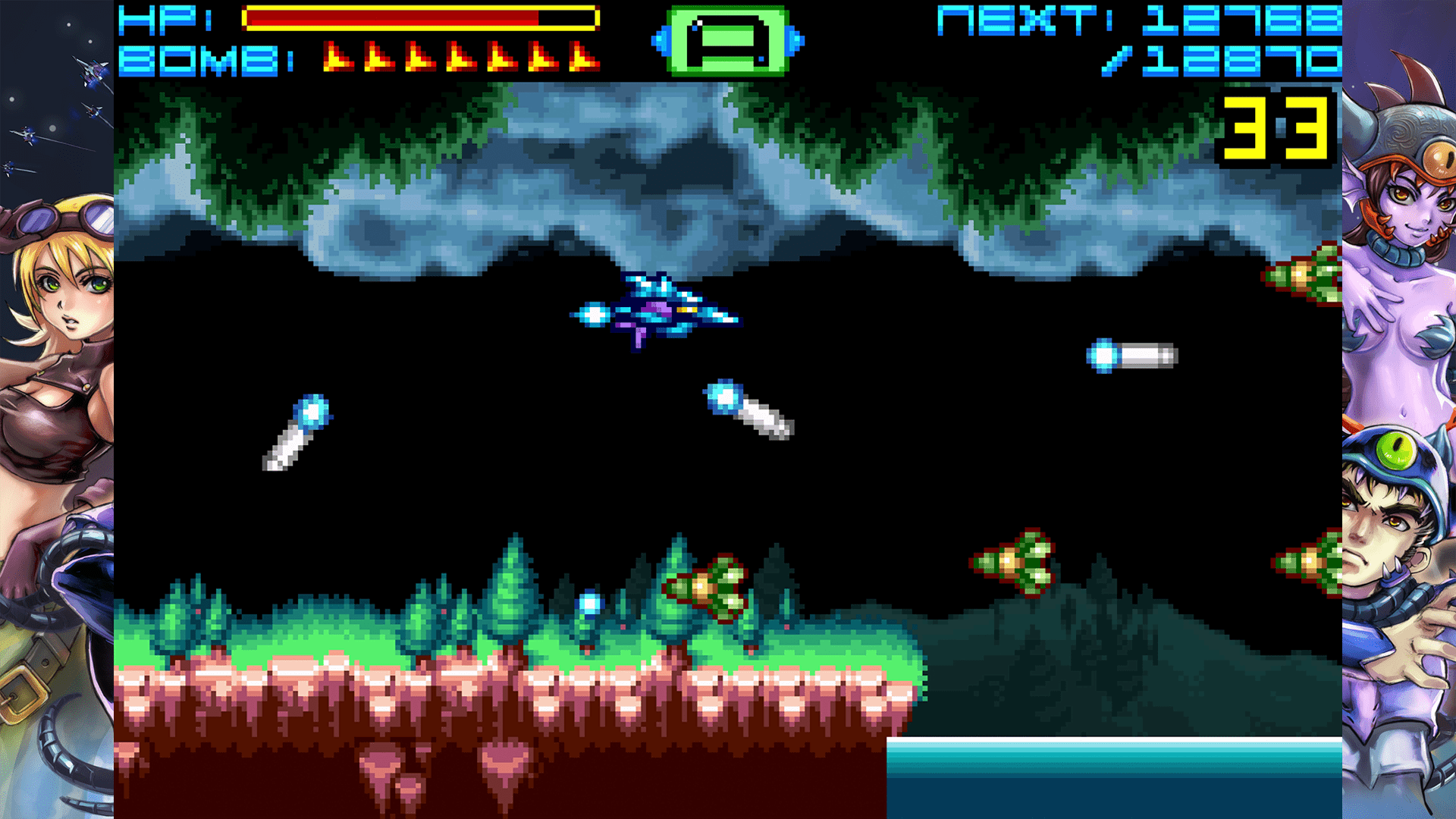 En su apartado gráfico, el juego apuesta por el ya clásico pixel art que respeta sus raíces, pero con mejoras que lo hacen más atractivo para uso en pantallas modernas. Los escenarios tienen ese encanto retro que no fue alterado, con planetas variados y diseños coloridos para diferenciar bien las zonas. Las animaciones eran simples, pero cumplen correctamente y le dan esa sensación clásica al juego. Durante las secciones shoot ’em up, los efectos visuales y los patrones de los enemigos aportan mucho dinamismo a la acción, no buscando impresionar en su apartado técnico, pero si logrando una propuesta muy atractiva para nuestra colección de juegos.