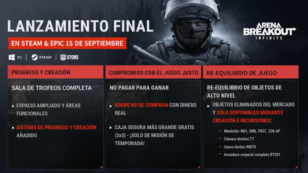 Arena Breakout: Infinite se lanzará oficialmente en Steam el 15 de septiembre.
