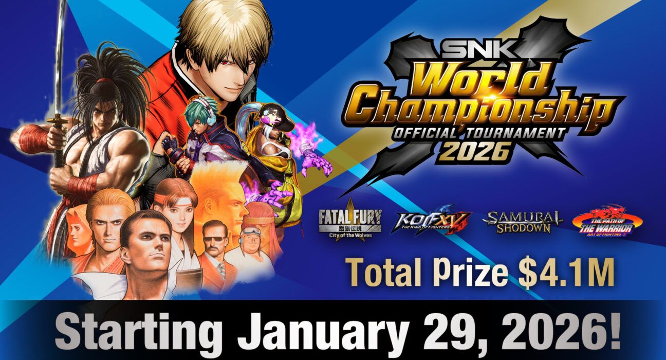 El Torneo mundial de esports, el SNK World Championship 2026 contará con cuatro títulos de SNK: FATAL FURY: City of the Wolves, The King of Fighters XV, Samurai Shodown yArt of Fighting 3. Los jugadores que consigan los mejores resultados a lo largo de los Torneos Clasificatorios —que comienzan el 29 de enero del 2026— tendrán su lugar asegurado en la Gran Final.