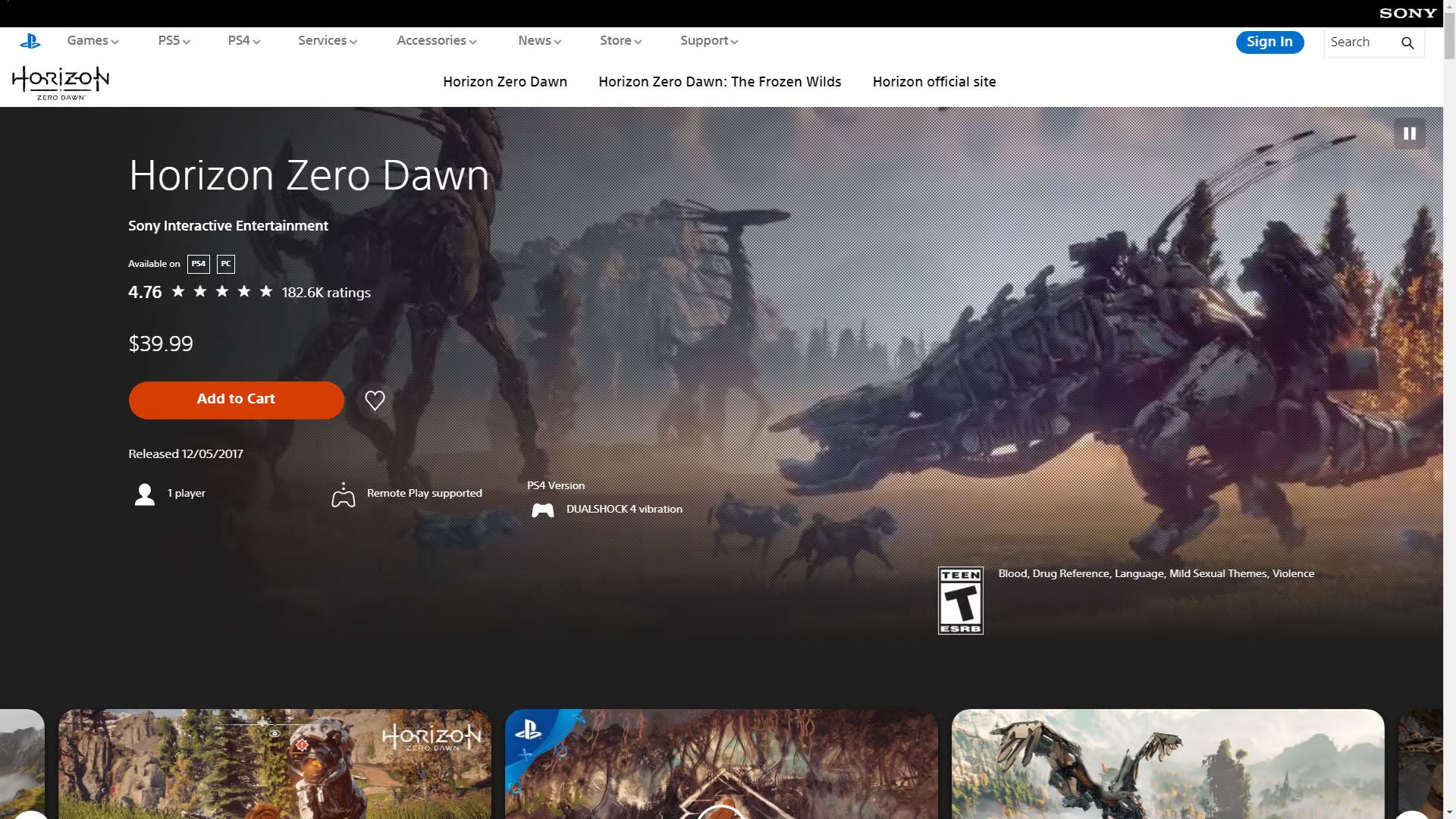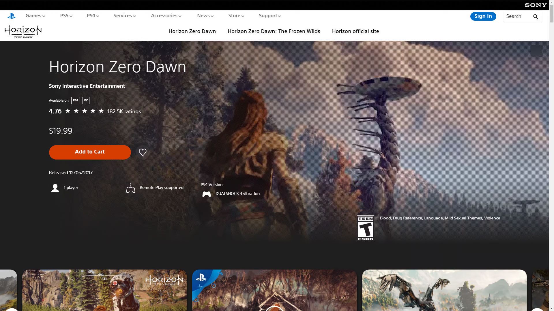 Hace apenas unos días antes de la reciente presentación, el juego estaba disponible a un precio fijo de $19,99 USD, incluso la secuela del juego, Forbidden West, también estaba incluida en PlayStation Plus Premium aunque esto ya no es así.