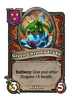 Los dragones tampoco se quedan atrás y, como una expansión tematizada a ellos, era de esperar que nuestros dracos incluyeran una nueva palabra clave como lo es “Chromadrake” o “Cromadraco”, quienes serán pequeños dragones que nos proporcionarán diversas mejoras según el color de dragón que juguemos. Por ejemplo, los dragoncillos bronce y verde se encargarán de darle +10 puntos de vida y de daño a todos nuestros dragones, mientras que los dragoncillos rojo, negro y azul se encargarán de mejorar el poder de nuestros hechizos de taberna y entregarnos más de ellos.