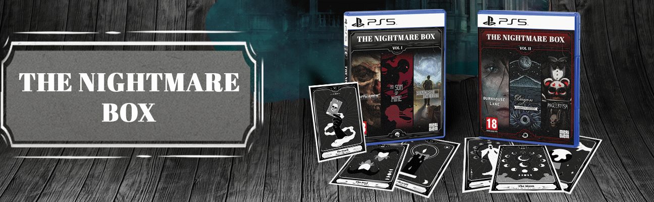 Meridiem se complace en anunciar The Nightmare Box Vol. 1 y Vol. 2 ya están disponibles en formato físico para PlayStation 5The Nightmare Box Vol. 1 incluye Project Nightmares Case 36: Henrietta KedwardNo Son of Mine y Remorse: The List, y The Nightmare Box Vol. 2 incluye Burnhouse LaneDagon: Complete Edition y Anglerfish para PlayStation 5. Publicado digitalmente por Feardemic, los títulos de The Nightmare Box Vol. 1 & Vol. 2 jugarán con tus pensamientos y miedos.