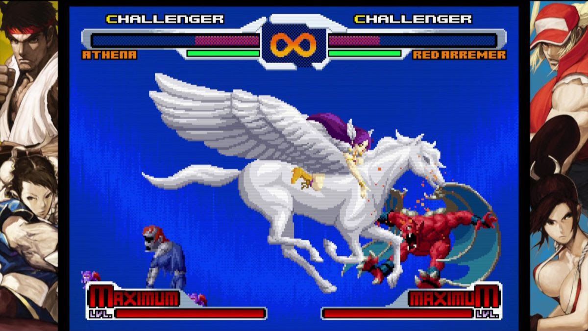 Entre los representantes de SNK se encuentran figuras conocidas de los juegos de pelea como Kyo Kusanagi, Terry Bogard y Mai Shiranui, así como íconos de SNK como Mars People, Athena y otros. Mientras que del lado de Capcom hay veteranos del ring como Ryu, Chun-Li y Demitri, junto a personajes como Zero, Red Arremer y más. ¡Juega con un total de 36 personajes que representan el legado de SNK y CAPCOM!