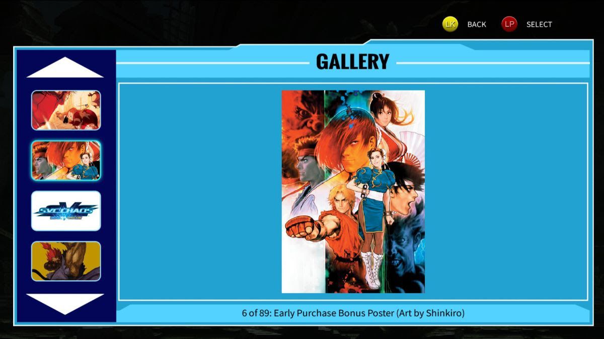 El nuevo visor de hitbox ofrece una visión detallada de las zonas de colisión de cada personaje, mientras que el modo de galería completo presenta 89 ilustraciones (incluyendo key arts, retratos de personajes y más) y ofrece un verdadero festín visual. ¡Disfruta de todo esto y más en el nuevo y mejorado SVC CHAOS!