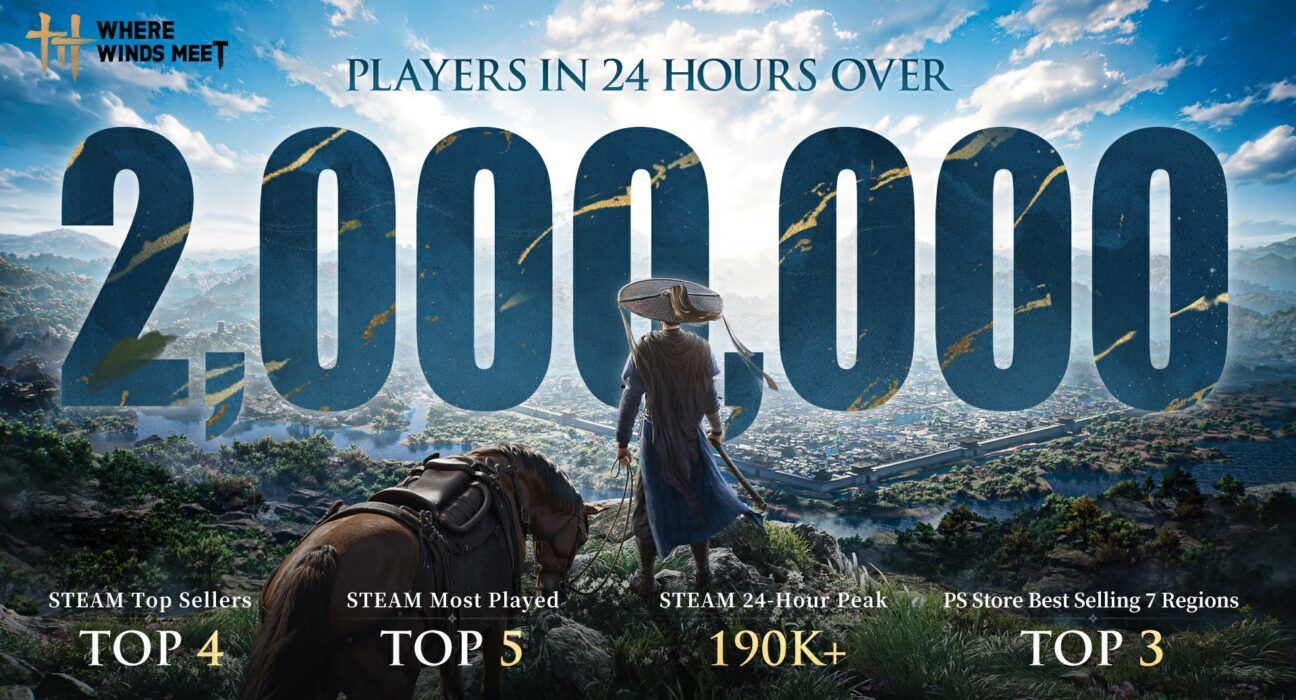 Where Winds Meet no tardó en dejar su huella tras su estreno global: en solo 24 horas, más de dos millones de jugadores se sumaron a esta aventura Wuxia de mundo abierto. Everstone Studio y NetEase Games confirmaron el hito, acompañado de un pico de casi 194 mil usuarios simultáneos solo en Steam. Aunque estas cifras quedan por debajo de lanzamientos masivos como Black Myth: Wukong o Battlefield 6, representan un logro notable para un RPG de acción de este tipo, especialmente considerando su llegada multiplataforma.